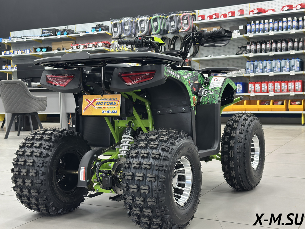 Хороший квадрик, брал для племянника. Выглядит стильно, мотор мощный. Трансмиссия плавная, сцепление хорошее. Сиденье удобное, можно кататься вдвоём. Задние тормоза с ручником — удобно. Из недочётов — немного шумит подвеска, но в целом всё норм.
