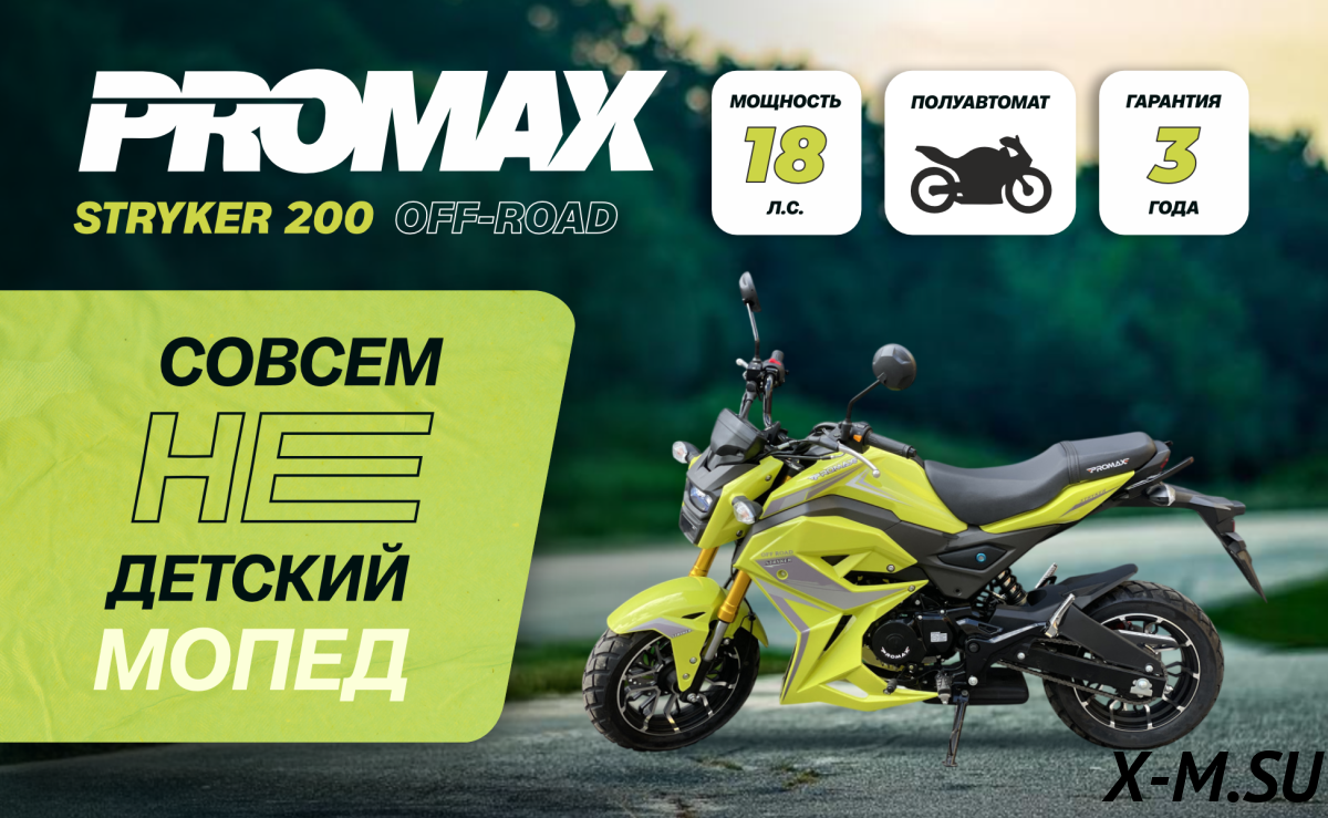 Мото PROMAX STRYKER 200 — топчик! Купил недавно, впечатления только положительные. Двигло мощное, переключение скоростей без выжимки сцепления — удобно. Пластик качественный, не гнётся. Подвеска ITALIN V-ONE отрабатывает на ура. В общем, я доволен, мотоцикл стоит своих денег.