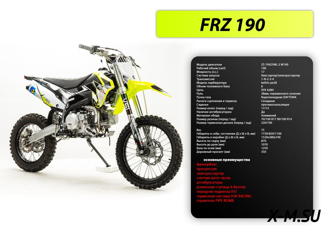 Дополнительная информацияЦена на товар Питбайк PWR Racing FRZ 190 не является итоговой и может измениться в зависимости от валютных курсов, общей экономической ситуации или логистических и иных факторов.