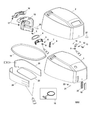 Верх капота 2-Х ТАКТНОГО ПЛМ MERCURY 50EO Серийный номер от 0P325500 и выше