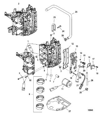Компоненты гидроподъема (Часть 1) 4-Х ТАКТНОГО ПЛМ MERCURY 40 Серийный номер от 0P401000 до 0P515896