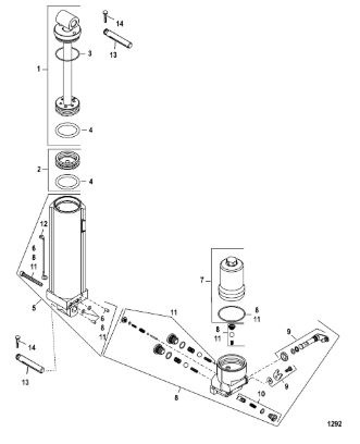 Компоненты гидроподъема (Часть 1) 4-Х ТАКТНОГО ПЛМ MERCURY 40 Серийный номер от 1B227000 до 1B344398